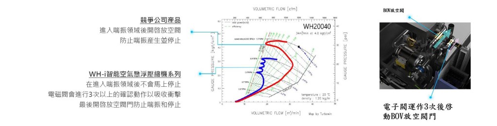 通過額外配備的電磁閥進行精確控制,在發生喘振現象之前電磁閥會開啓3至4次來預防電機損壞,
