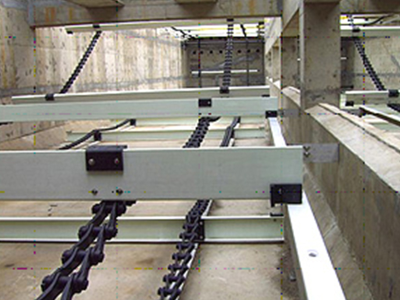 (2) 刮泥機鏈條材質採用強化尼龍樹脂一體成型製造,破壞強度至少為3000kg以上。