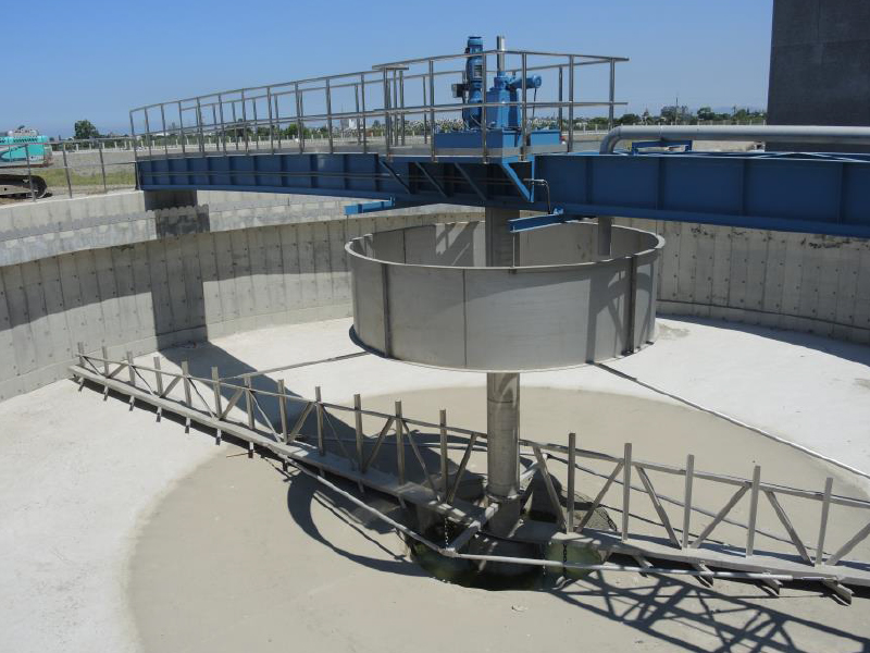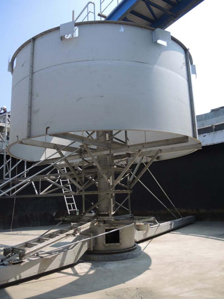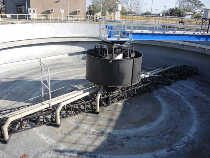 特性:沉澱池刮泥設備為管柱式支撐、中央驅動、中心入流、虹吸排泥、周邊溢流式設計。